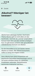 Darüber hinaus bietet die App fundiertes Wissen rund um Risiken des Alkoholkonsums, gesundheitliche Vorteile weniger oder gar keinen Alkohol zu trinken sowie aktuelle, wissenschaftlich basierte Empfehlungen.