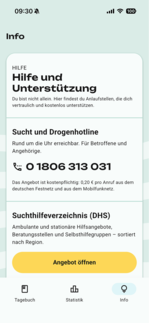 Sollte es Ihnen trotz des Versuchs nicht möglich sein, auf Alkohol zu verzichten, nehmen Sie fachliche Unterstützung in Anspruch! Kontaktadressen finden Sie im Bereich „Hilfe und Unterstützung“ DHS Trinktagebuch App.